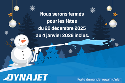 Dynajet A/S sera fermé du 20 décembre 2025 au 4 janvier 2026 (inclus).
